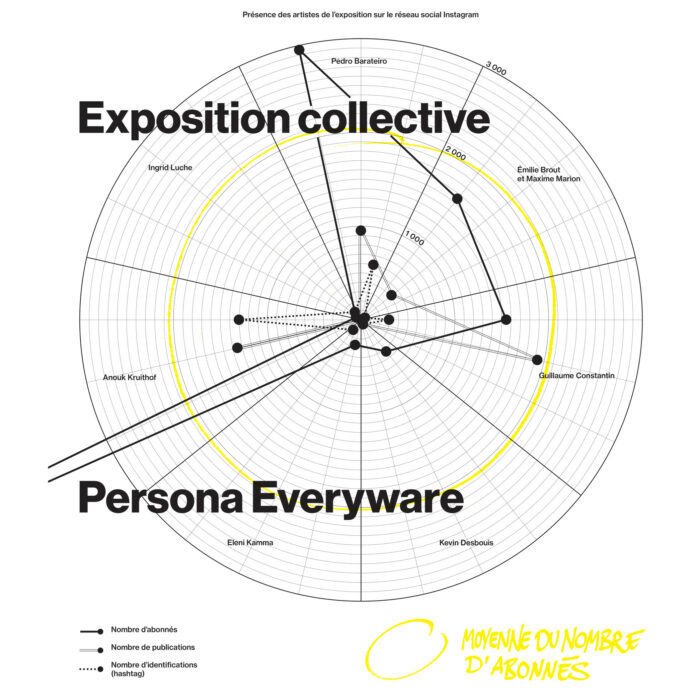 Les artistes de l’exposition Persona Everyware s’emparent ou manipulent cet amas de données et d’affects, travaillent avec (et parfois contre), tentent de les rendre (in)visibles, de redonner une voix ou une présence physique à des contenus trop souvent considérés comme immatériels. Il s’agit pour eux de mettre en perspective le potentiel esthétique, poétique ou performatif de nos interactions quotidiennes.